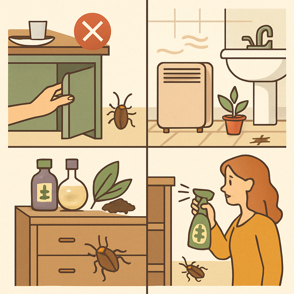 바퀴벌레는 습기를 통해 수분을 섭취하기 때문에 건조한 공간에서는 생존이 어렵습니다. 특히 주방 싱크대, 욕실 하부장, 세탁기 주변 등 물기 있는 공간을 청결하게 유지하고 물기 제거를 철저히 하면 바퀴벌레는 자연스럽게 멀어집니다. 제습제나 소형 환풍기를 사용하는 것도 좋은 방법입니다.