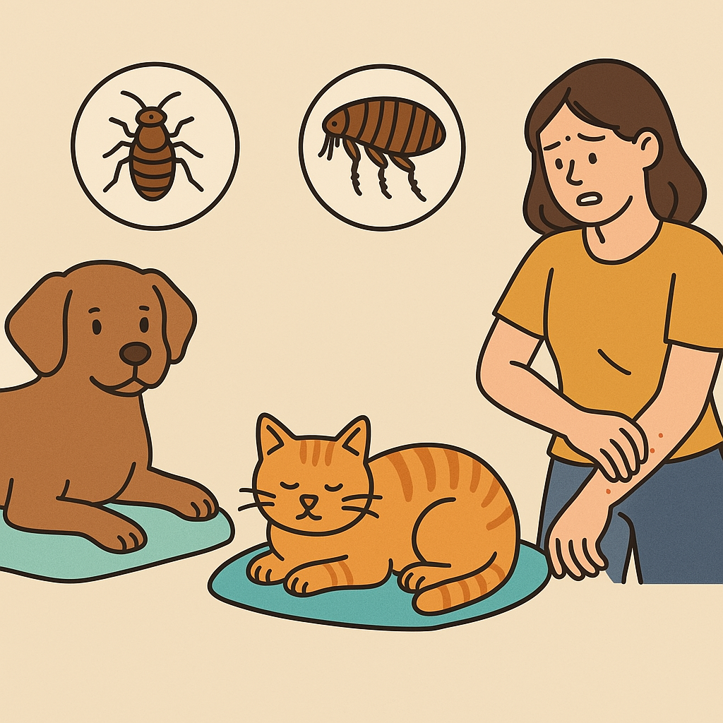 - 반려동물과 함께 자거나 밀접 접촉하는 경우, 사람 몸에도 옮겨 붙을 수 있음