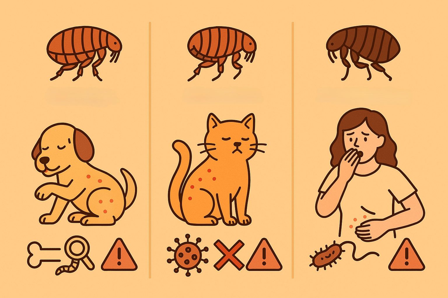 벼룩은 단순히 귀찮은 해충이 아닙니다. 종류에 따라 물림의 양상, 전파 가능한 질병, 위험성의 정도가 다르며, 대응 방법도 달라져야 합니다.