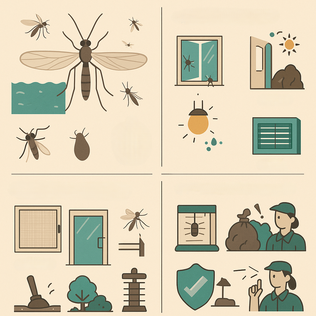 - 개방된 창문과 문: 방충망 부재 시 직접 유입