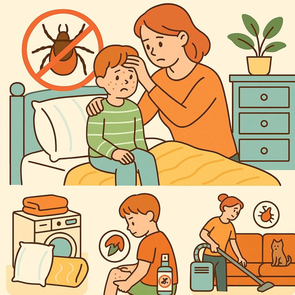 놀이터, 공원, 캠핑 등 야외 활동 후 아이의 피부를 꼼꼼히 살펴보세요. 특히 귀 뒤, 목, 팔 안쪽, 무릎 뒤처럼 접히는 부위에 진드기가 숨어 있을 수 있습니다. 외출 후엔 즉시 샤워를 시키고, 입었던 옷은 세탁기로 돌려야 안전합니다. - 아이용 진드기 기피제 사용